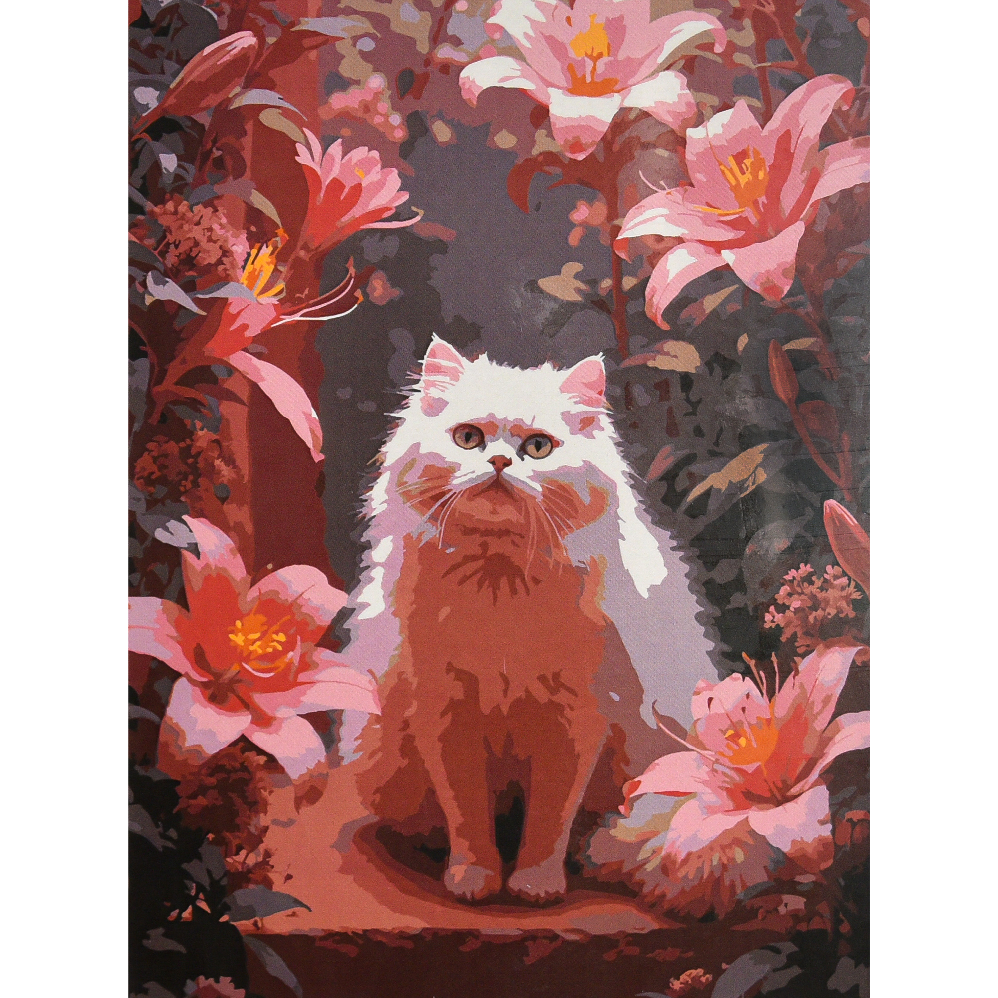 Картина за номерами Strateg Кіт у пелюстках 30х40 (SS-1368)
