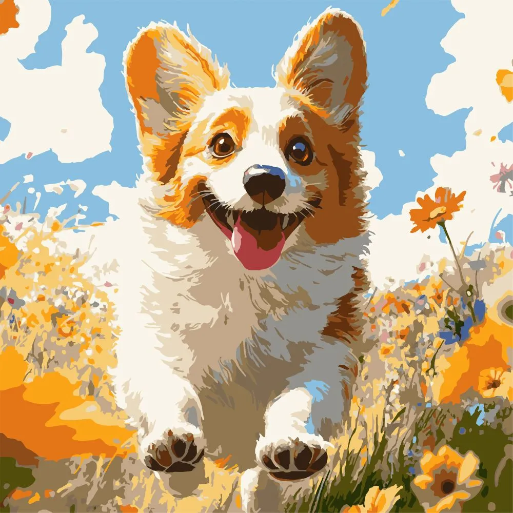 Картина за номерами Strateg Коргі в осені 30х30 (ES-0908)