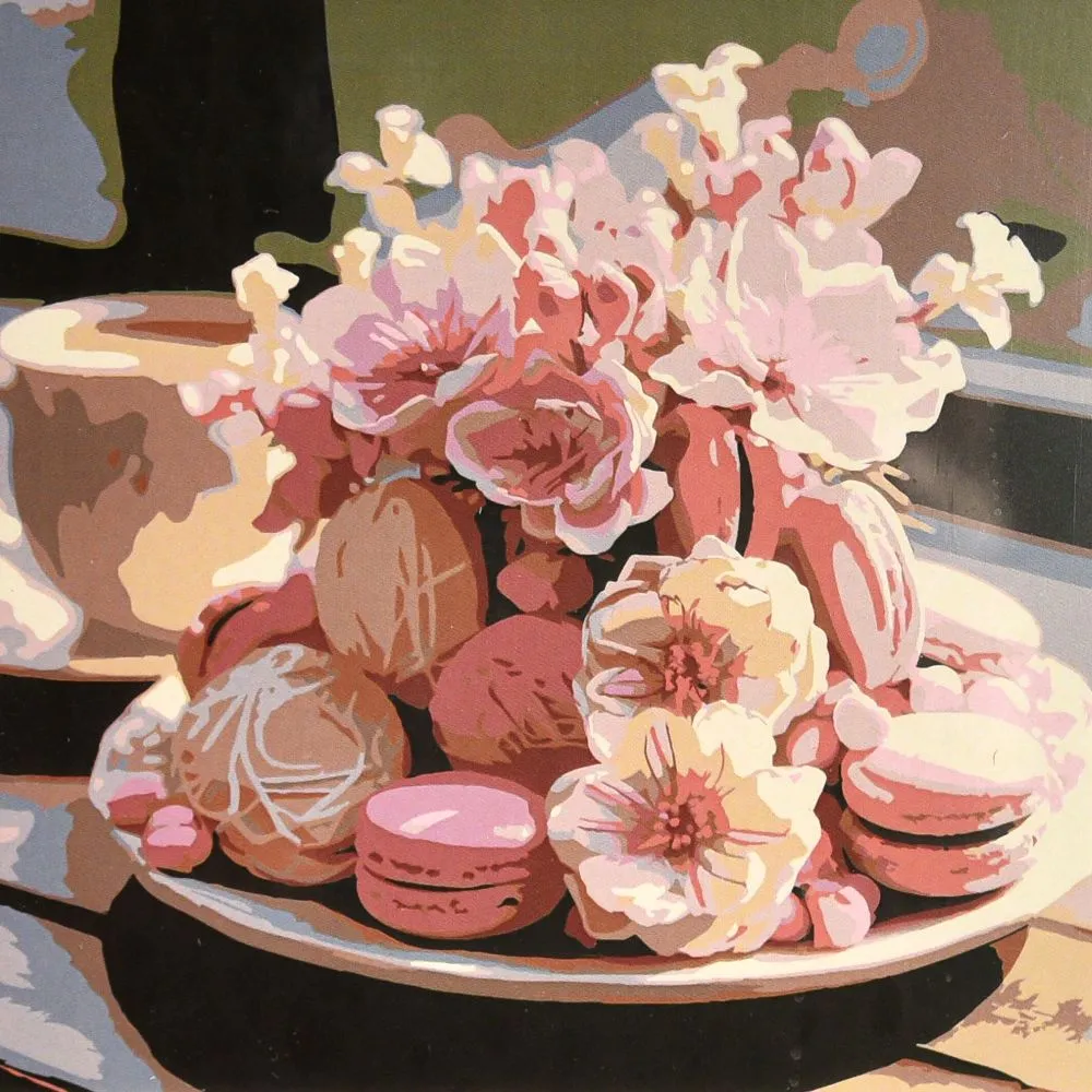Картина за номерами Strateg Макаруни та квіти 30х30 (ES-0934)