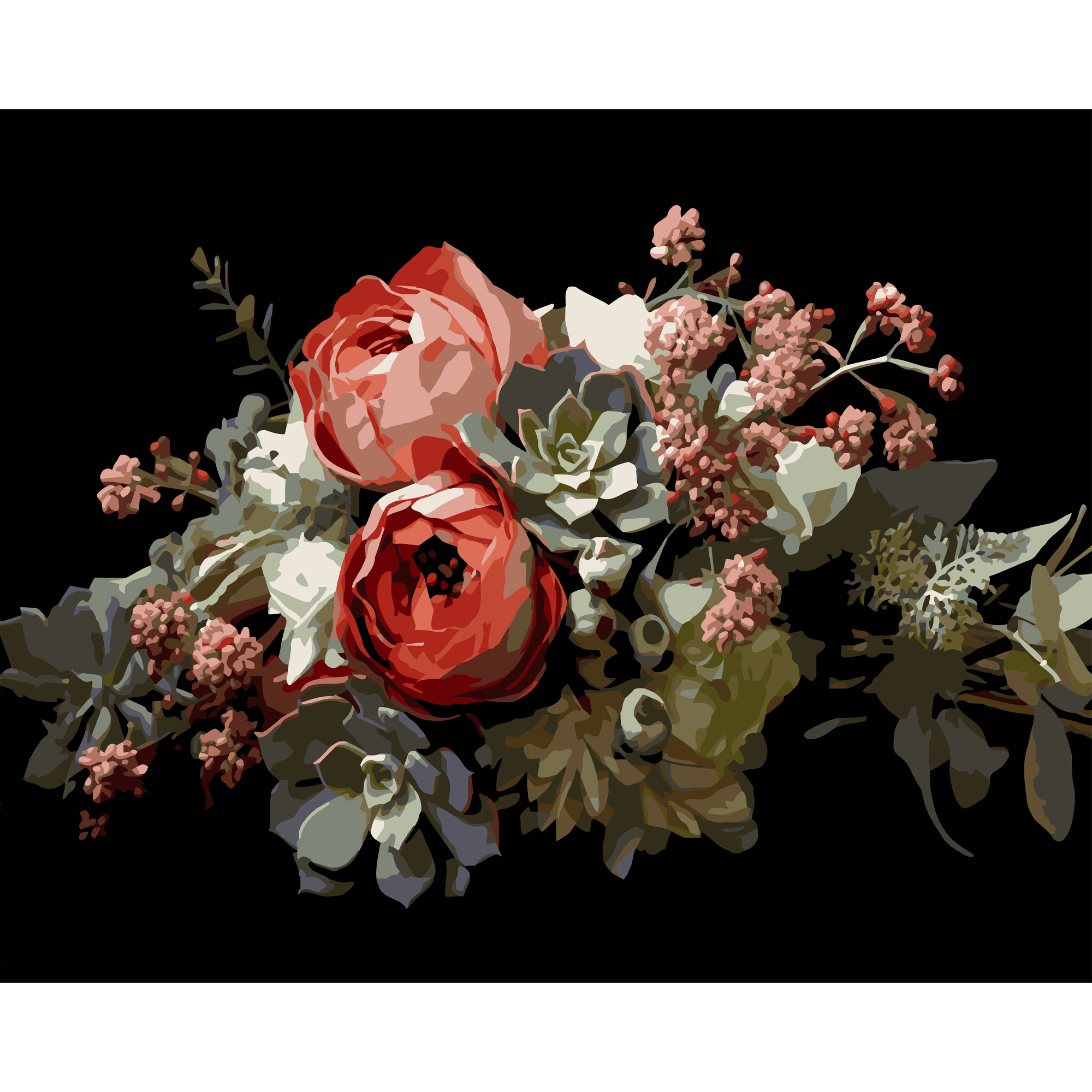Дозвольте художнику всередині себе вийти назовні й написати власний шедевр. Від людей до тварин, від квітів до пейзажів: усе вийде з-під вашого пера всього за декілька вечорів. А чорний фон картини подарує особливе естетичне задоволення. Формат 40х50 сантиметрів — те, що треба для затишних вечорів у компанії чи наодинці!