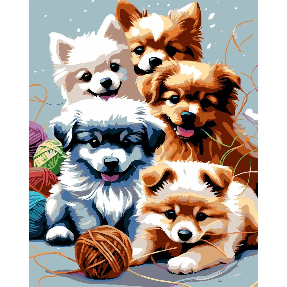Картина за номерами Strateg ПРЕМІУМ Грайливі цуценята на чорному фоні розміром 40х50 см (AH1226-19)
