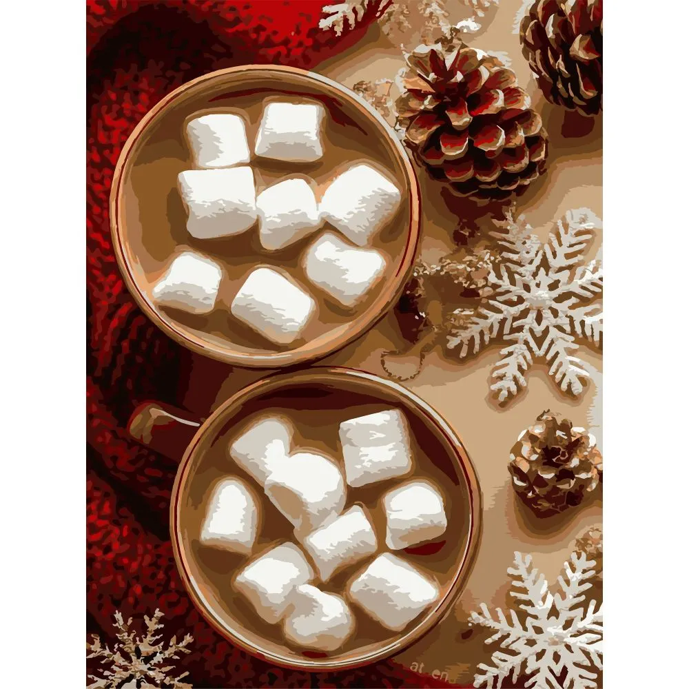 Картина за номерами Strateg ПРЕМІУМ Какао з маршмелоу з лаком та з рівнем розміром 30х40 см (SS1238)