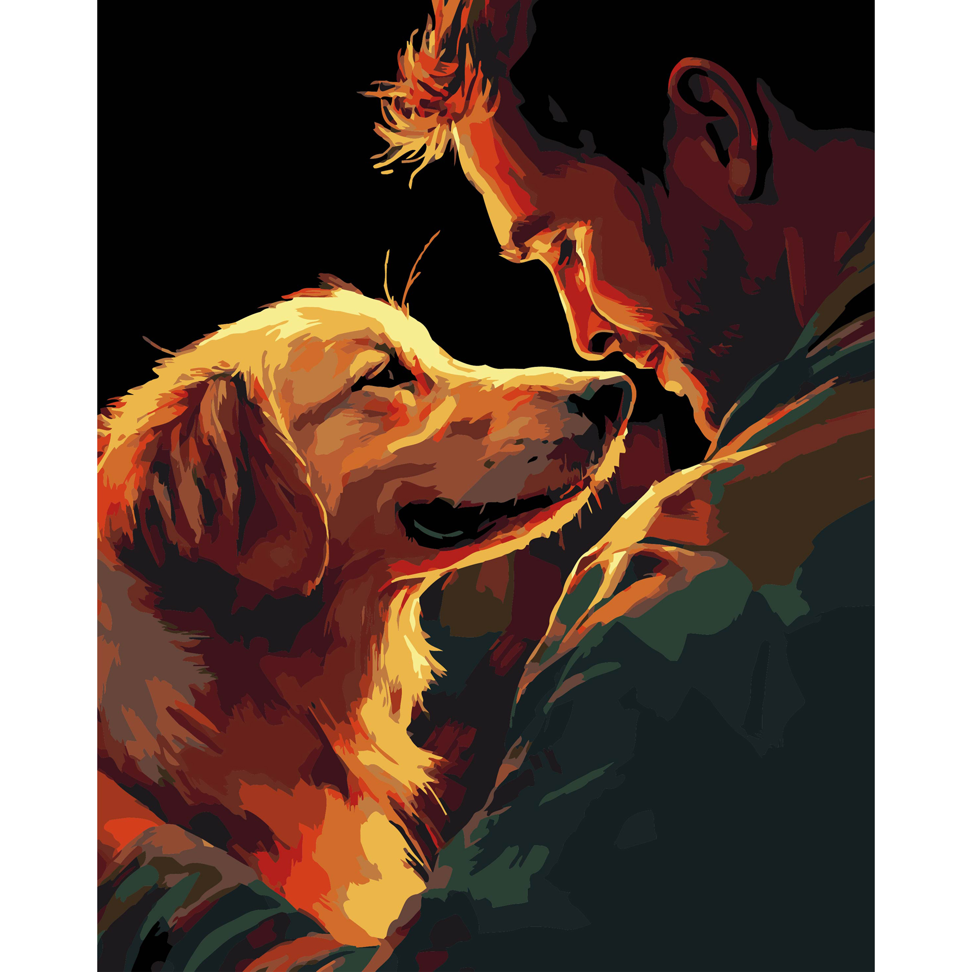 Картина за номерами Strateg ПРЕМІУМ Людина і пес на чорному фоні розміром 40х50 см (AH1181-19)
