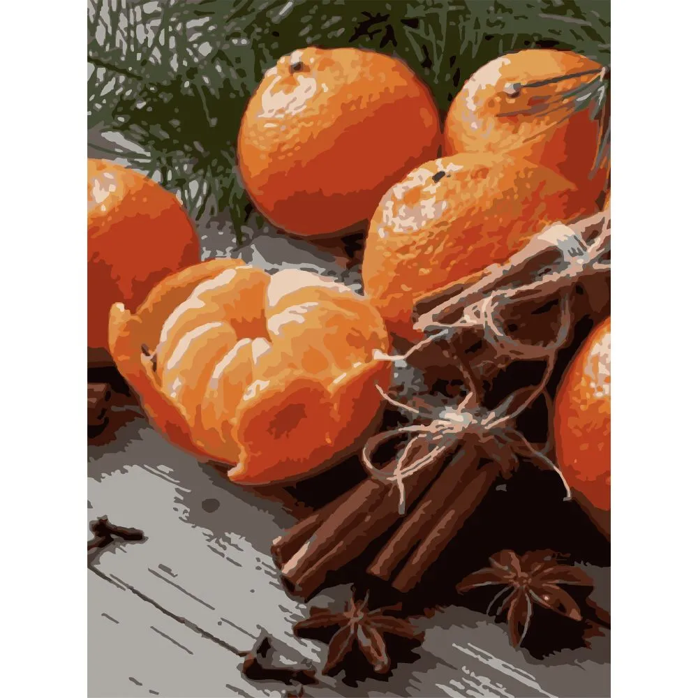 Картина за номерами Strateg ПРЕМІУМ Мандарини з прянощами з лаком та з рівнем розміром 30х40 см (SS1228)