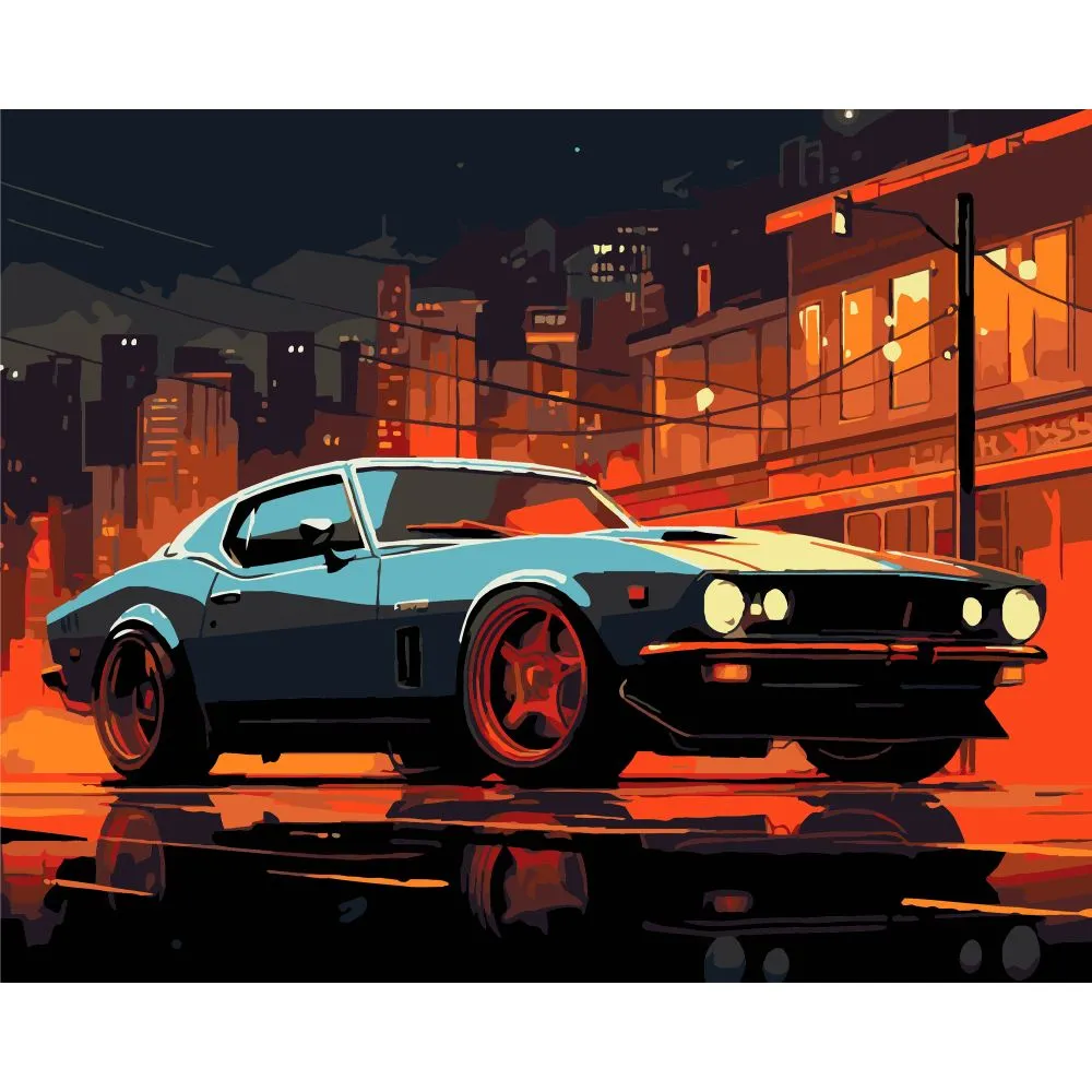 Картина за номерами Strateg ПРЕМІУМ Міський Мустанг на чорному фоні розміром 40х50 см (AH1217-18)