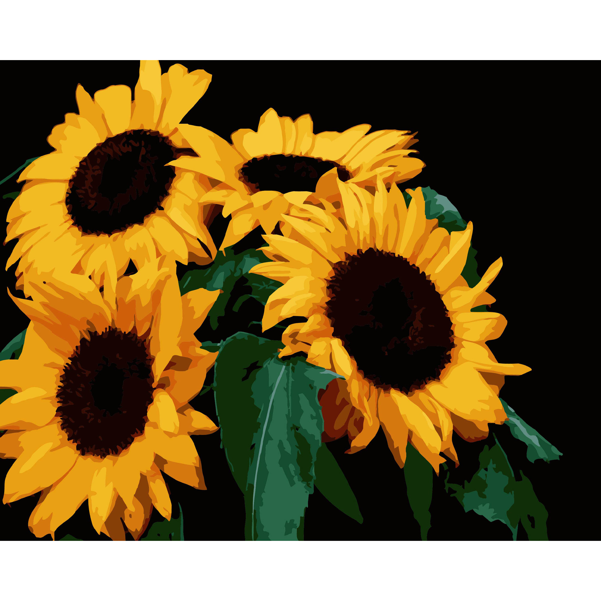 Картина за номерами Strateg ПРЕМІУМ Яскраві соняхи на чорному фоні розміром 40х50 см (AH1185-13)