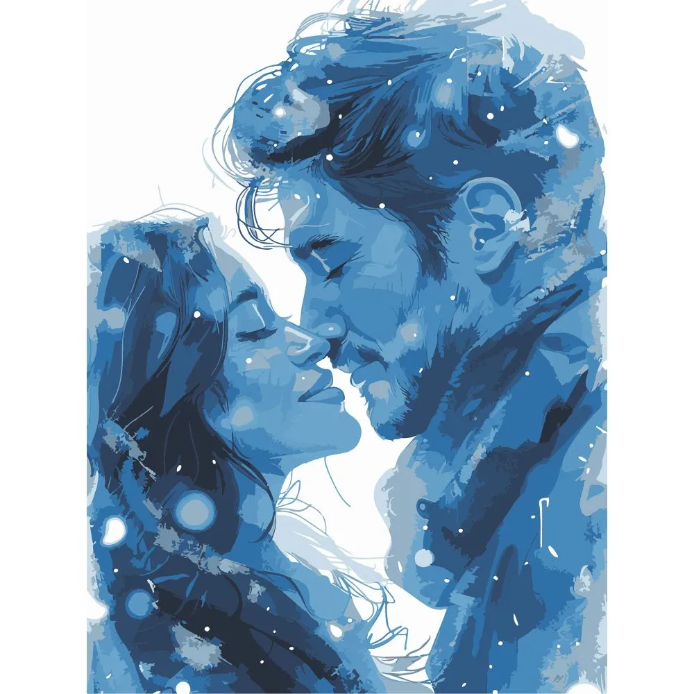 Картина за номерами Strateg ПРЕМІУМ Закохані взимку з лаком та з рівнем розміром 30х40 см (SS1246)