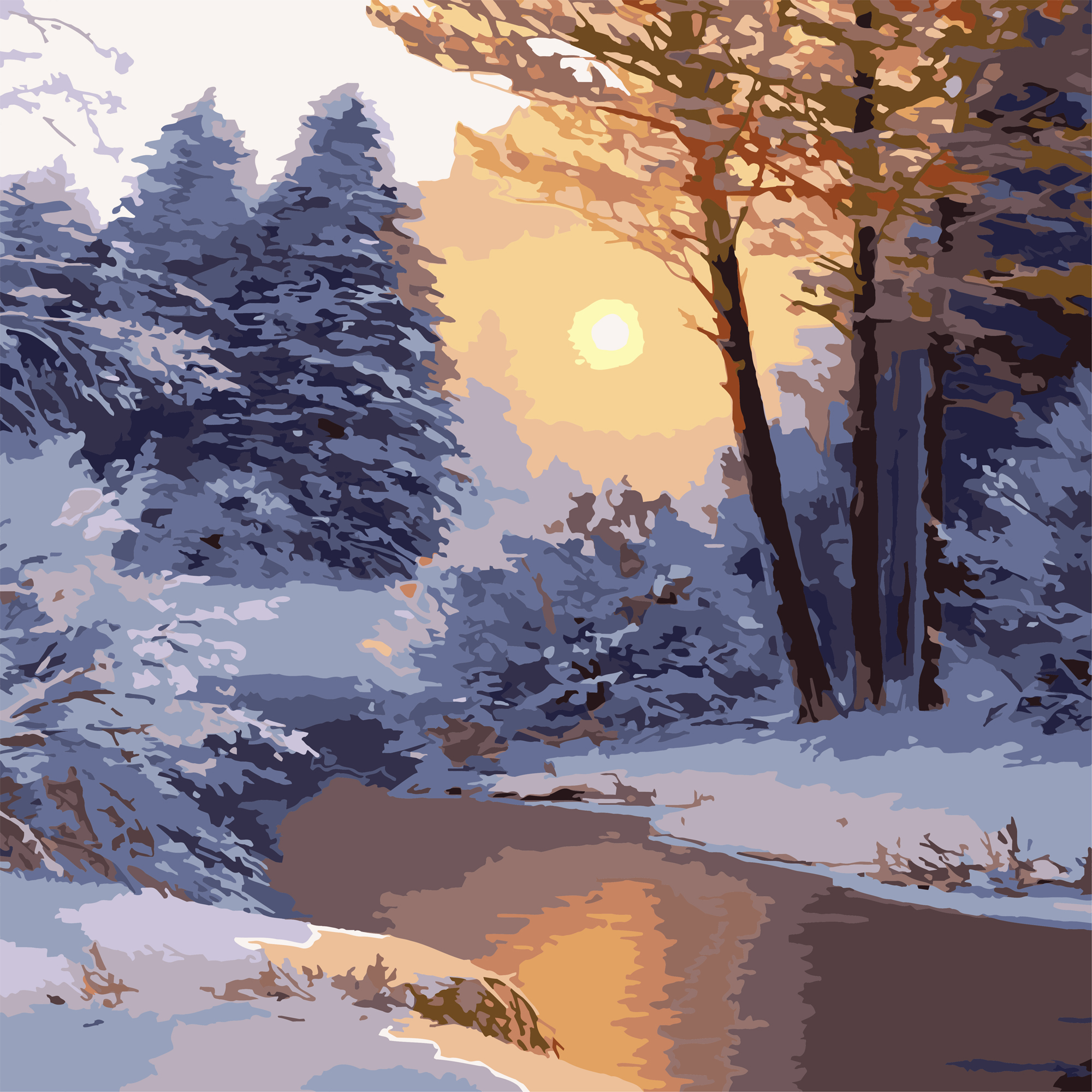 Картина за номерами Strateg ПРЕМІУМ Зимовий світанок розміром 40х40 см(FF-1005)
