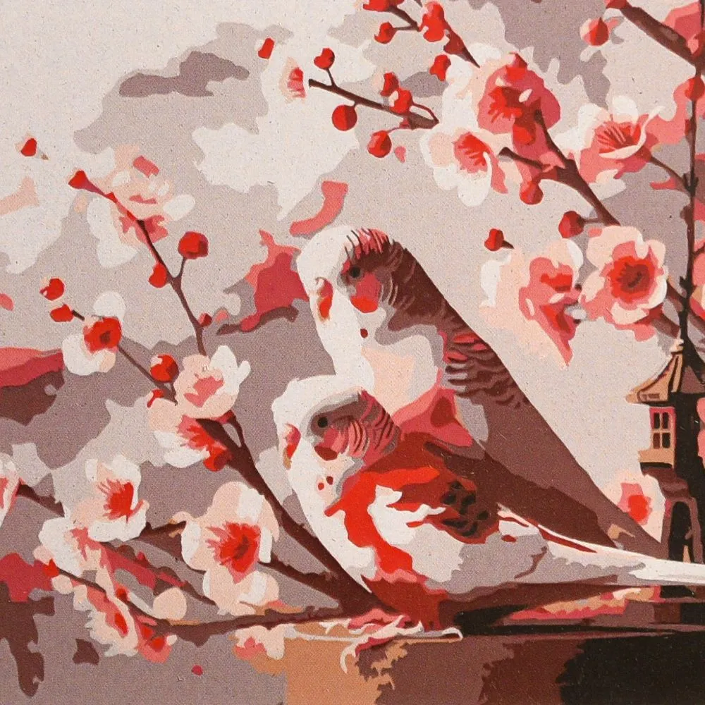 Картина за номерами Strateg Птахи в цвіті сакури 20х20 (HH8064)