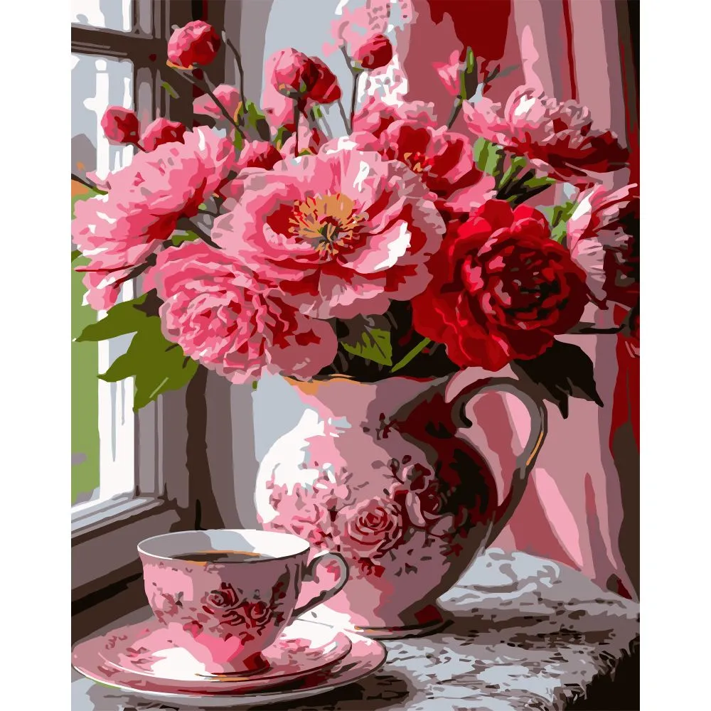 Картина за номерами Strateg Рожевий квітковий ранок 40Х50 (VG019)