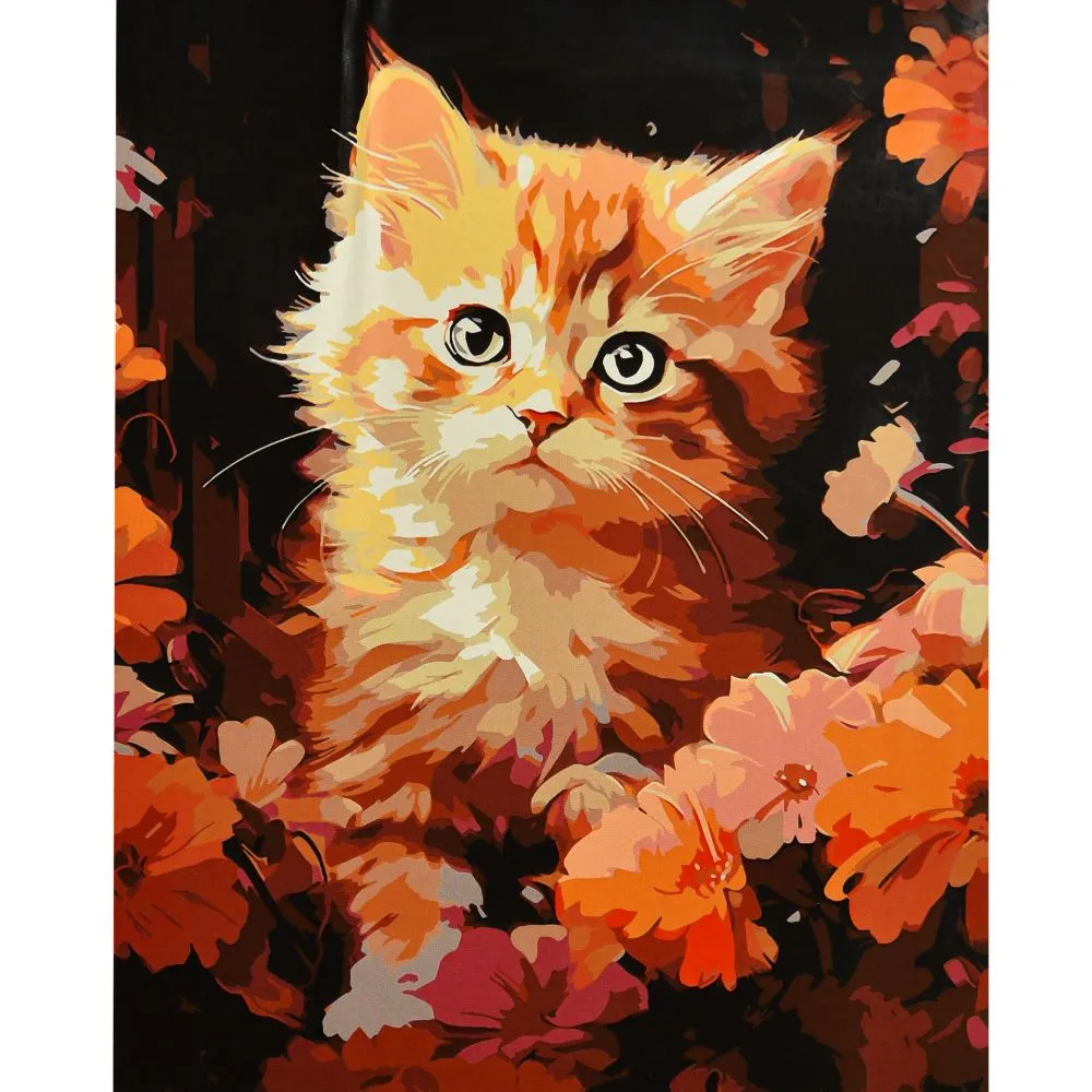 Картина за номерами Strateg Руде кошеня в квітах на чорному фоні 40х50 (AH1303)