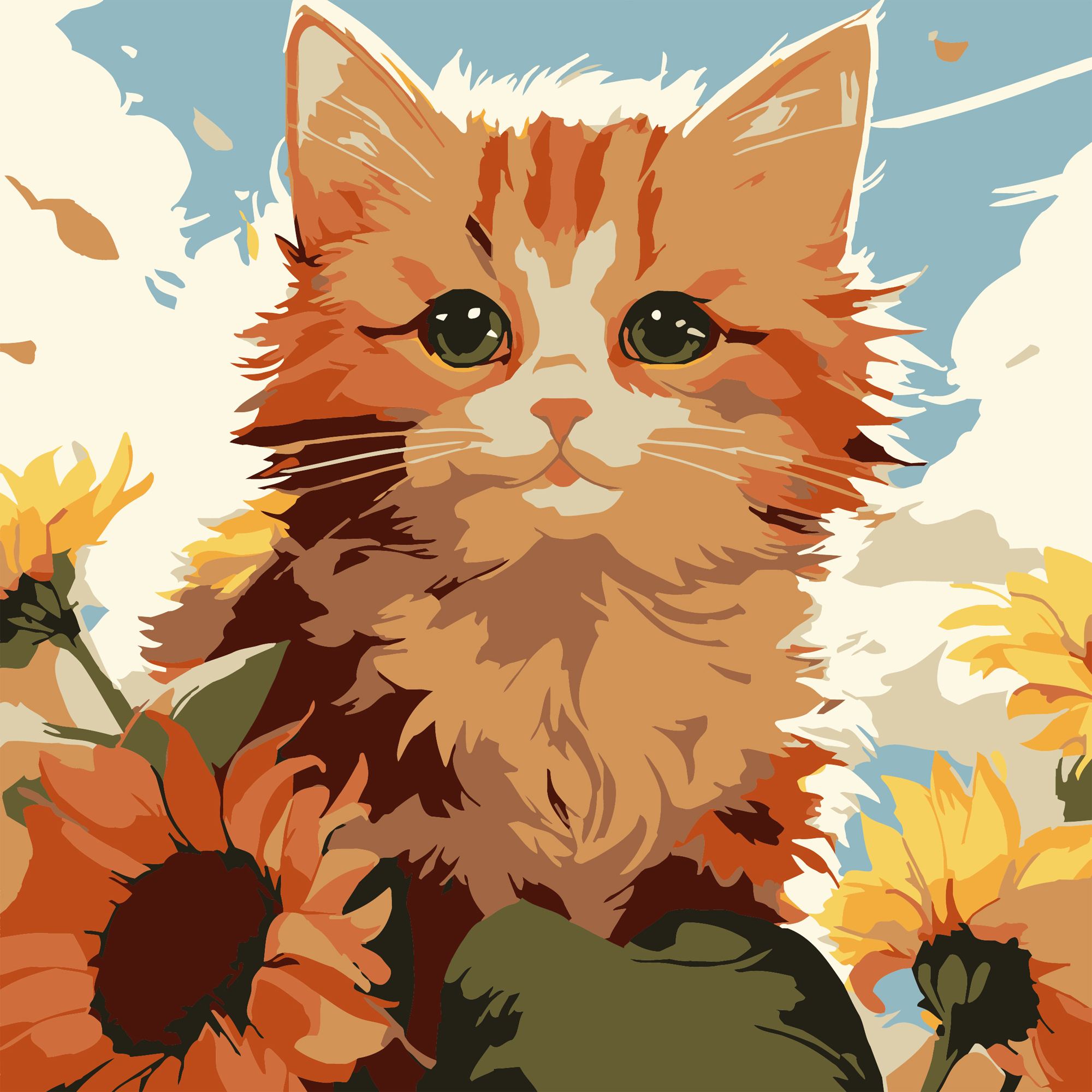Картина за номерами Strateg Рудий кіт з соняшниками 20х20 (HH8032)