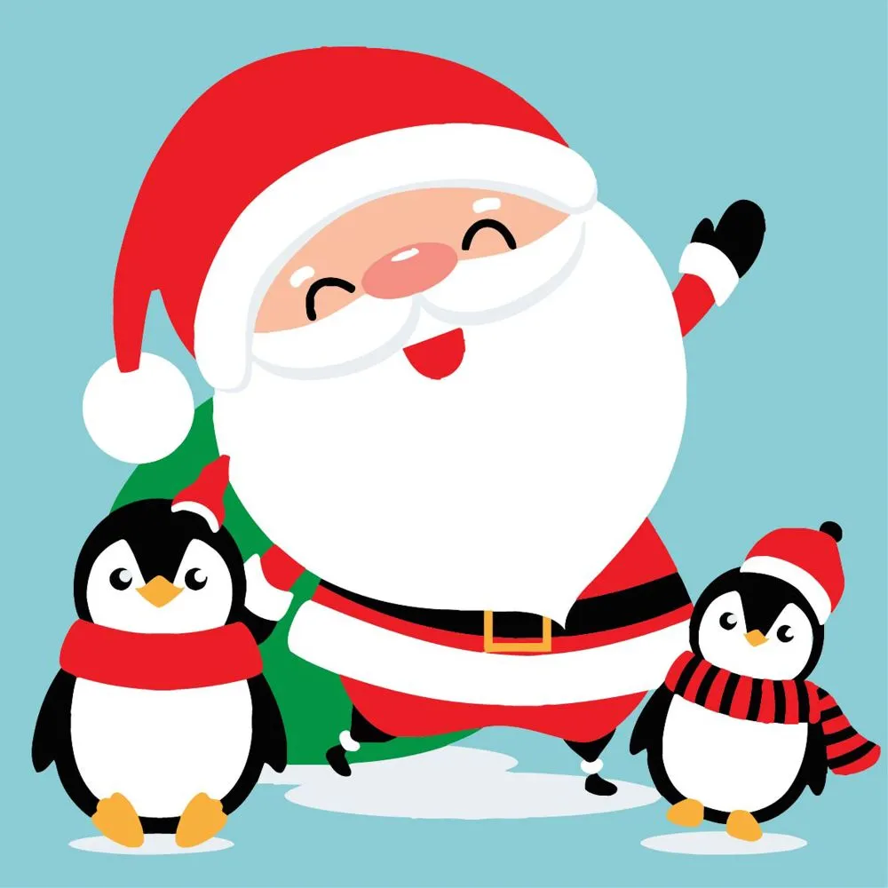 Картина за номерами Strateg Санта з пінгвінами розміром 20х20 см (HH8006)