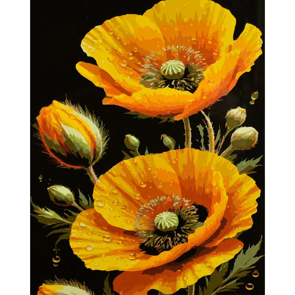 Картина за номерами Strateg Сонячні маки на чорному фоні 40х50 (AH1311)