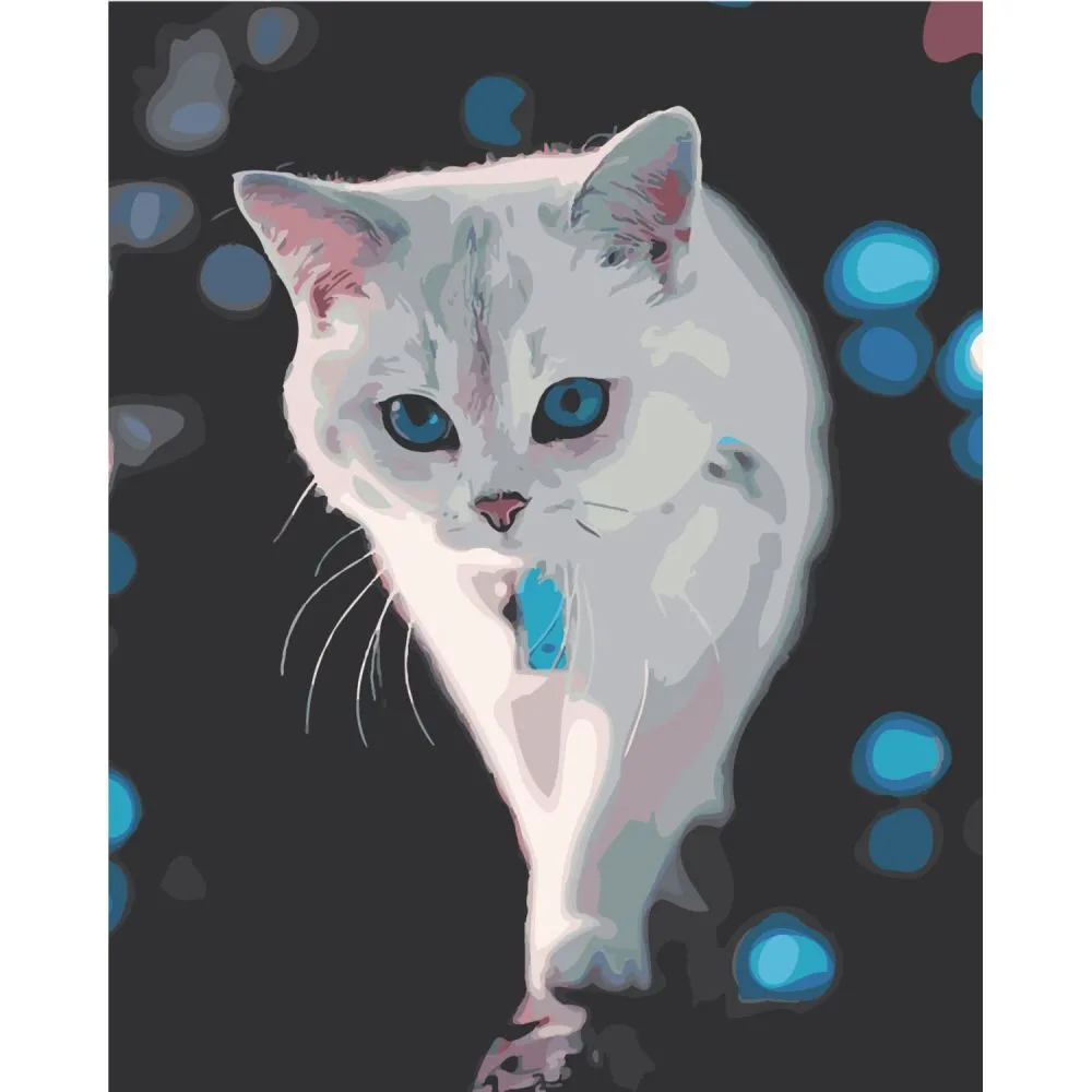 Картина за номерами Strateg Біла кішечка з лаком розміром 40х50 см SY6495