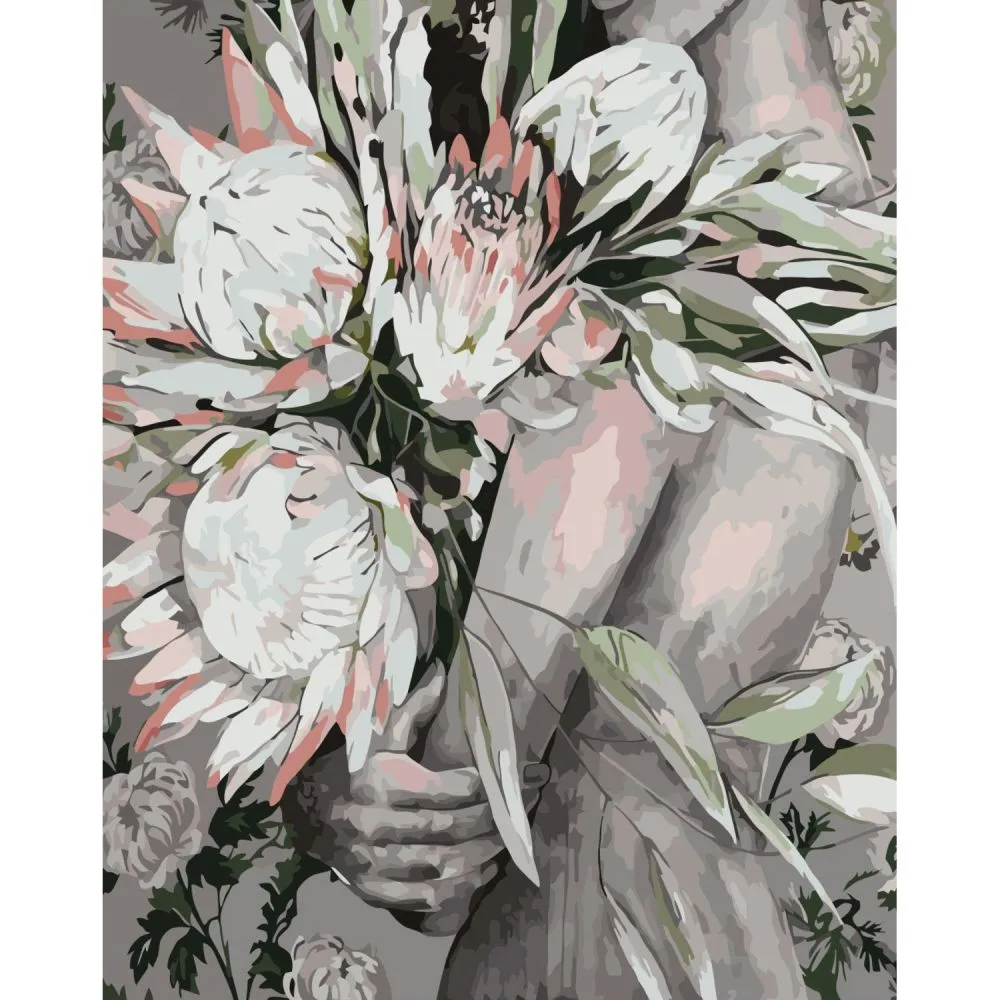 Картина за номерами Strateg Букет протеї в обіймах з лаком розміром 40х50 см VA-3344