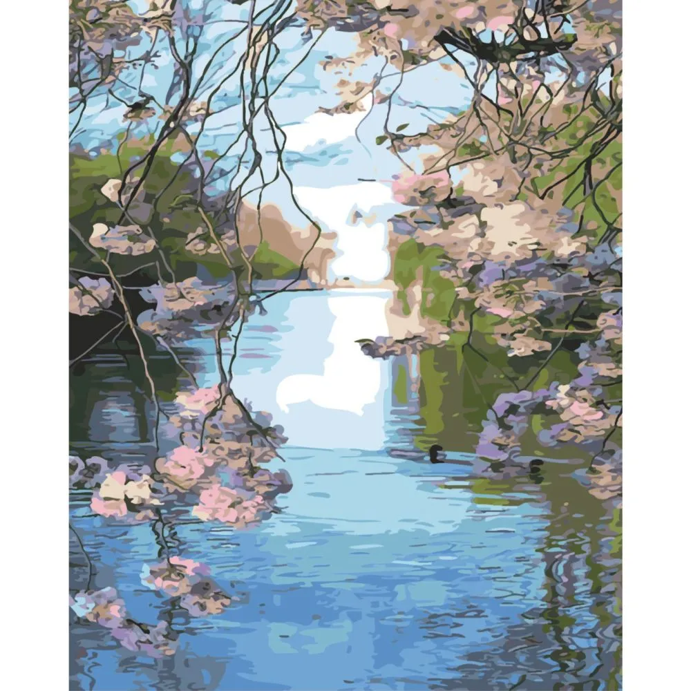 Картина за номерами Strateg Квітуча заводь з лаком розміром 40х50 см SY6419