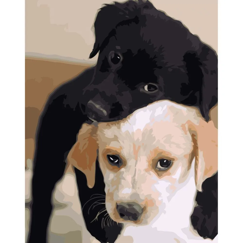 Картина за номерами Strateg Друзі цуценята з лаком розміром 40х50 см VA-3336