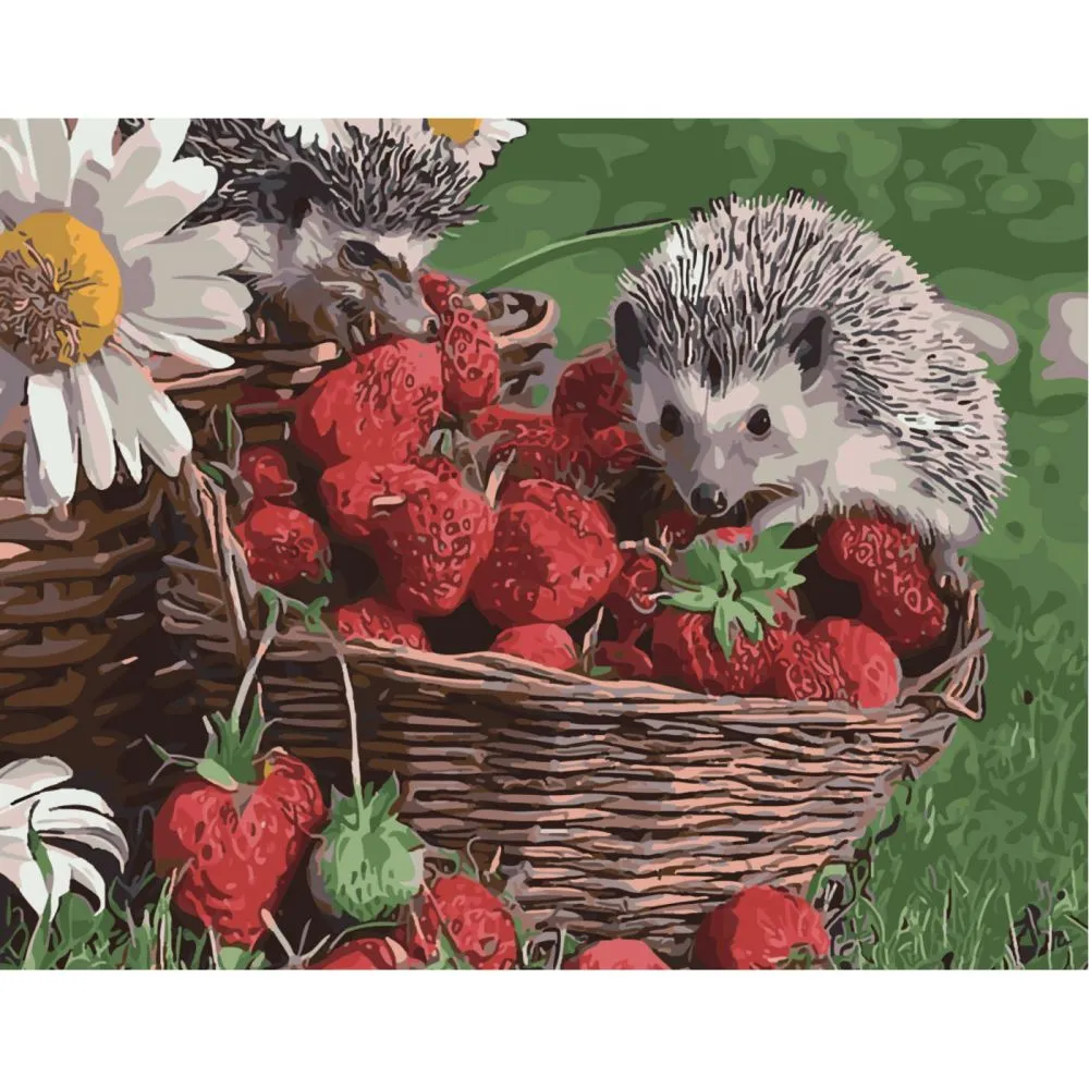 Картина за номерами Strateg Їжачок з полуницею з лаком розміром 40х50 см SY6441