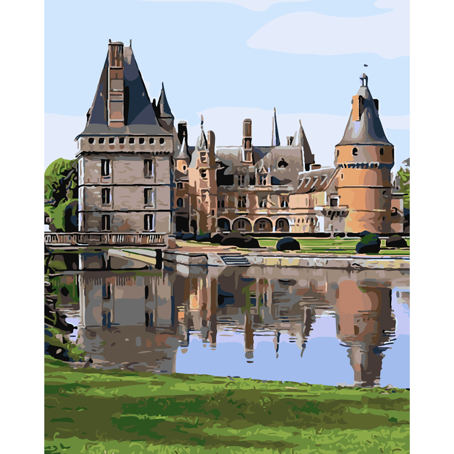 Картина за номерами Strateg Маєток на озері з лаком розміром 40х50 см SY6157