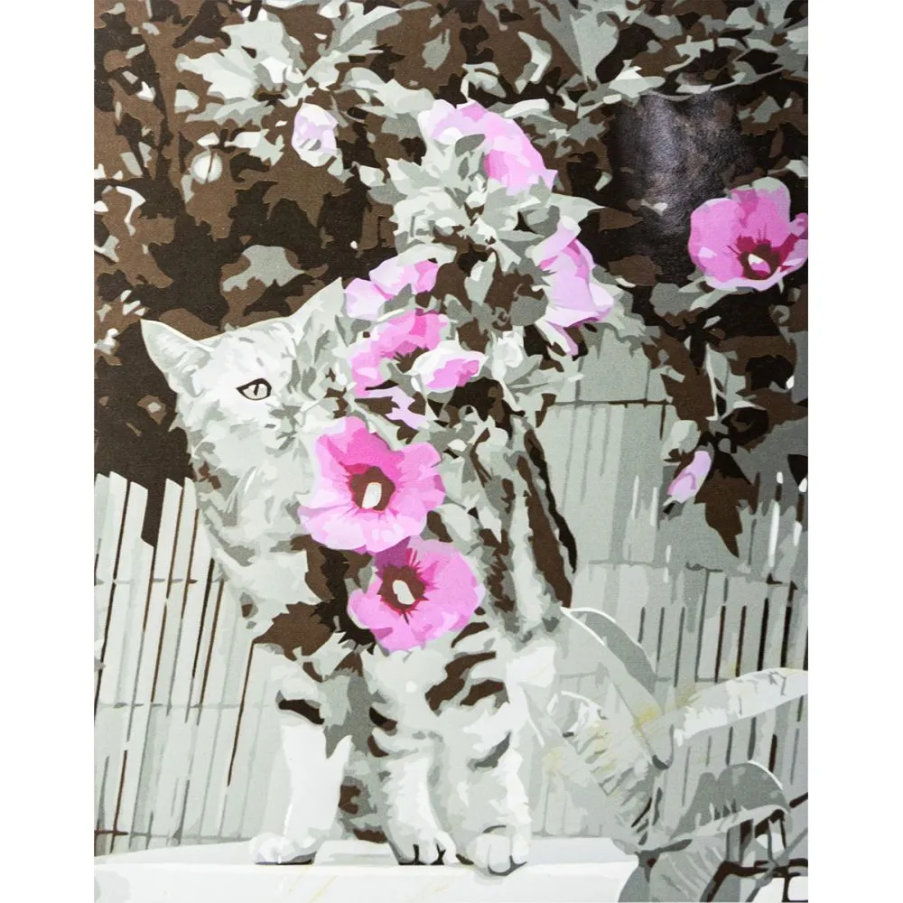 Картина за номерами Strateg Котик з мальвами з лаком розміром 40х50см VA-3337