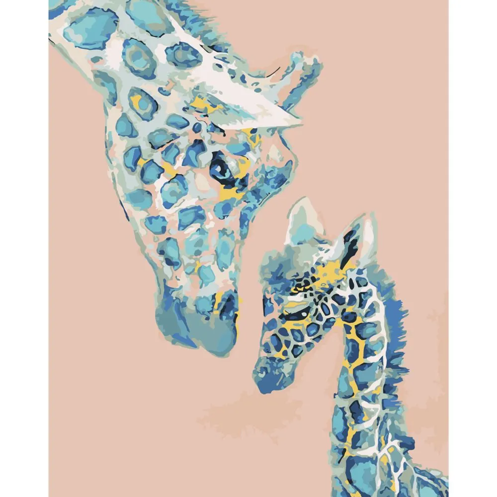 Картина за номерами Strateg Маленький жираф з мамою з лаком розміром 40х50 см SY6024