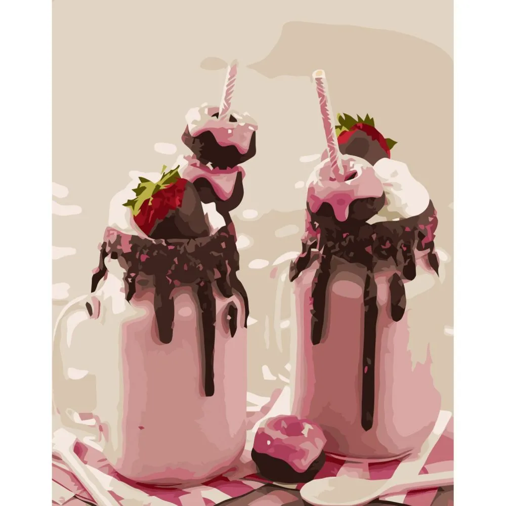 Картина за номерами Strateg Молочний коктейль із полуницею з лаком розміром 40х50 см VA-3341