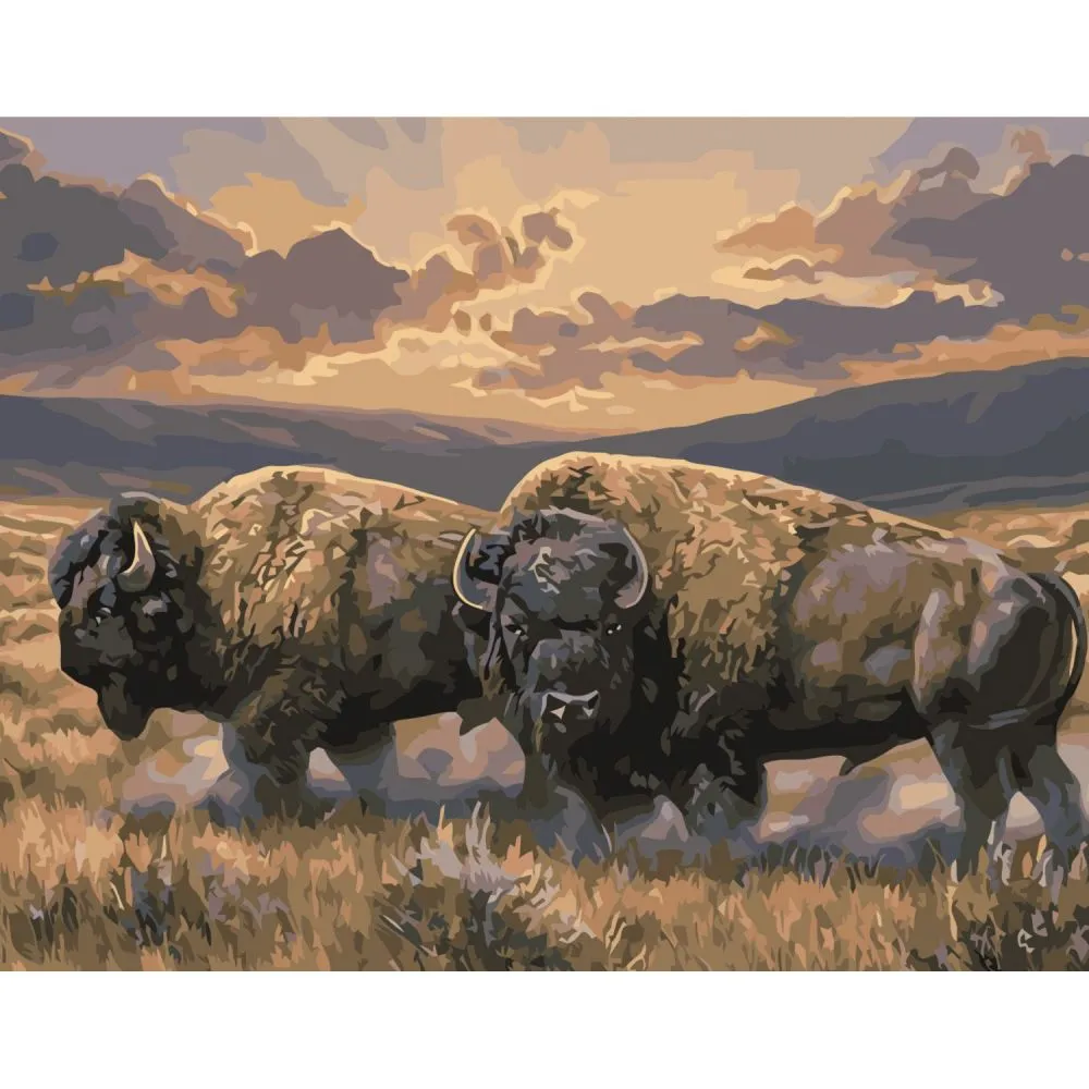 Картина за номерами Strateg Пара бізонів з лаком розміром 40х50 см VA-3348
