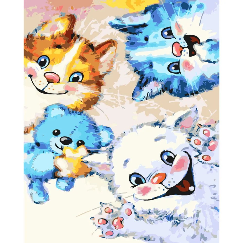 Картина за номерами Strateg Привіт від котиків з лаком розміром 40х50 см SY6361