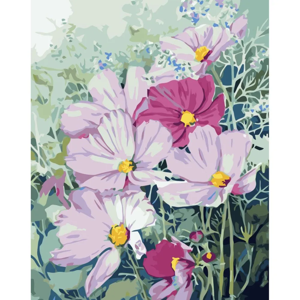 Картина за номерами Strateg Рожеві космеї з лаком розміром 40х50 см VA-3301