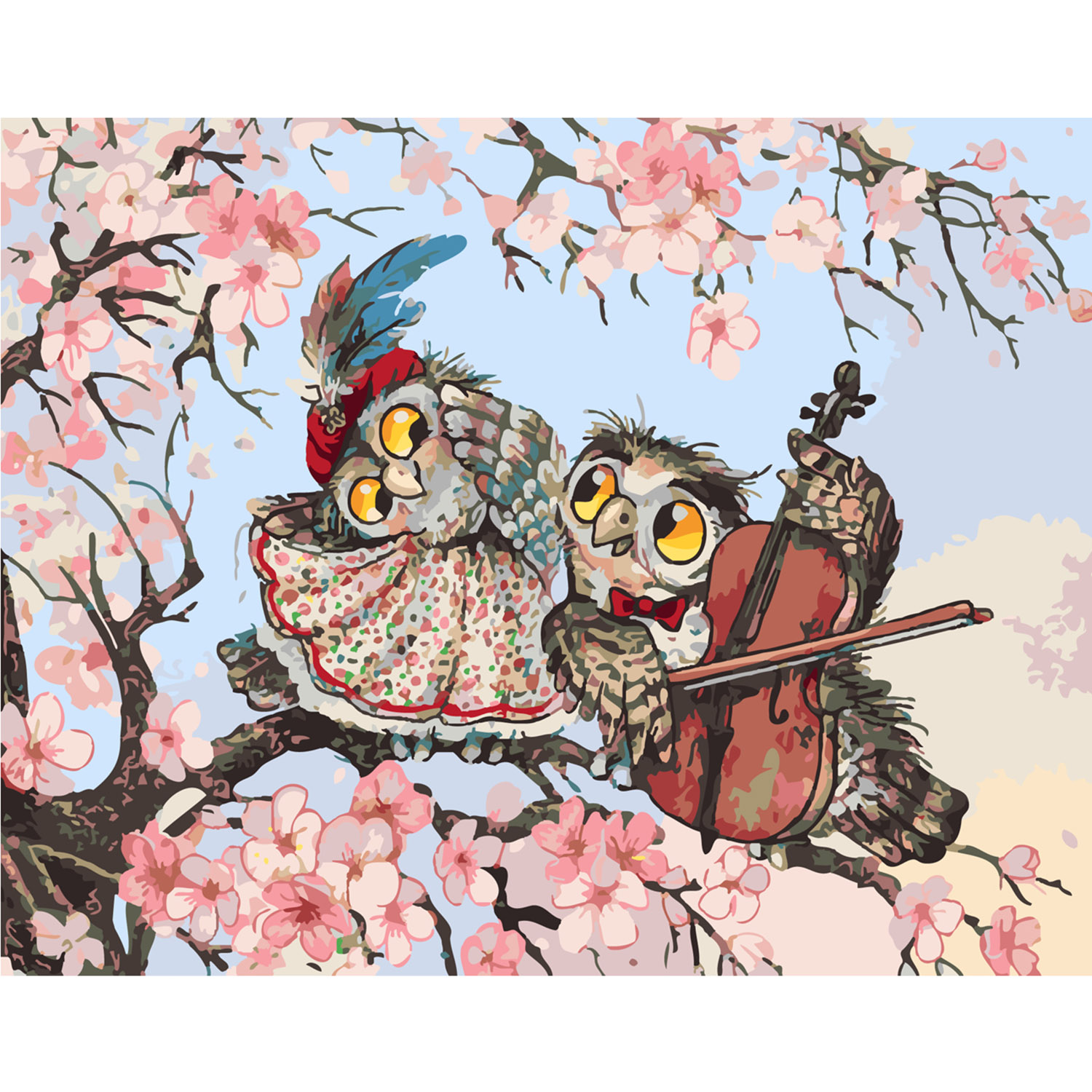 Картина за номерами Strateg Совушки з лаком розміром 40х50 см SY6366