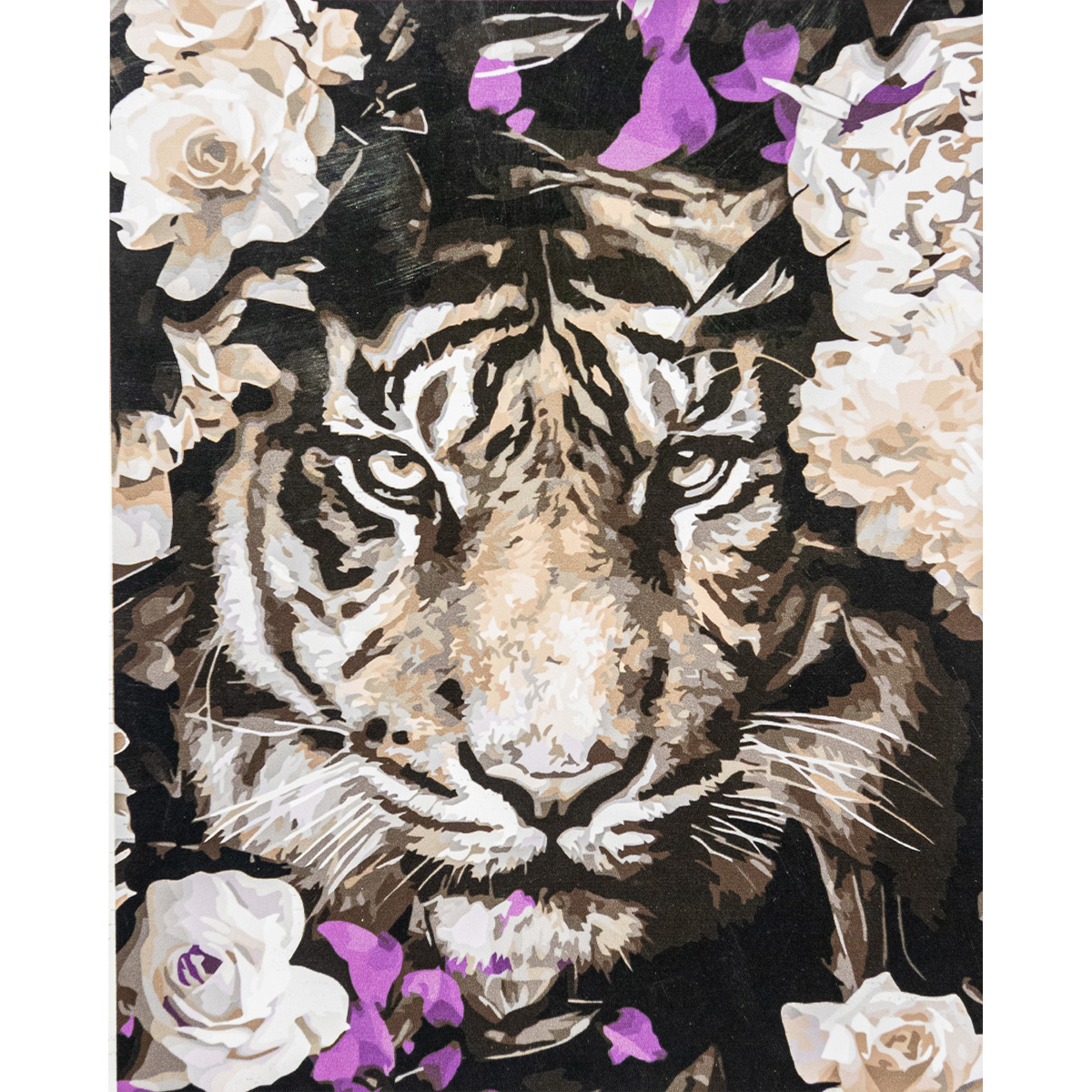 Картина за номерами Strateg Тигр у квітах з лаком розміром 40х50 см VA-3369