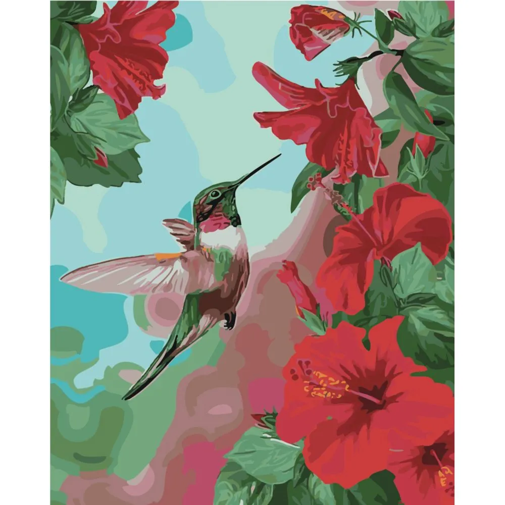 Картина за номерами Strateg Тропічна колібрі з лаком розміром 40х50 см SY6434
