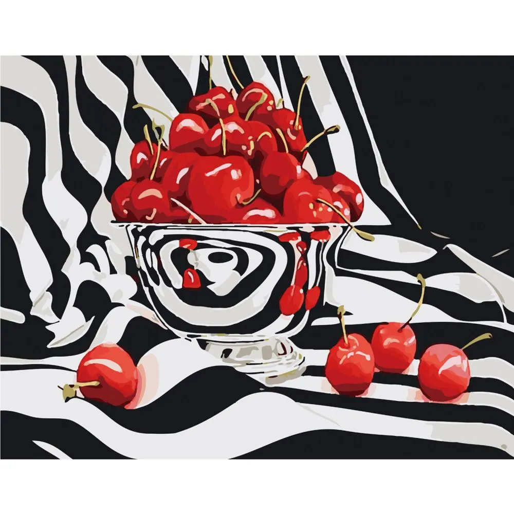 Картина за номерами Strateg Вишня на чорно-білому фоні з лаком розміром 40х50 см SY6159