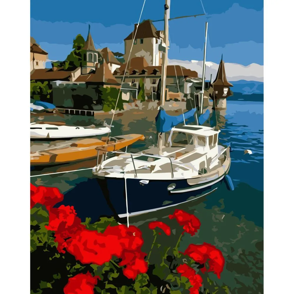 Картина за номерами Strateg Яхта у Греції з лаком розміром 40х50 см VA-3356
