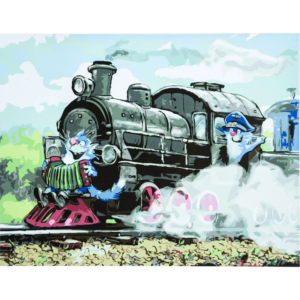 Картина за номерами Strateg Веселі машиністи з лаком розміром 30х40 см SS-3685