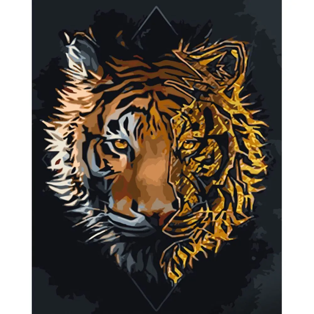 Картина за номерами Strateg Арт-тигр з лаком та з рівнем розміром 40х50 см (GS1436)
