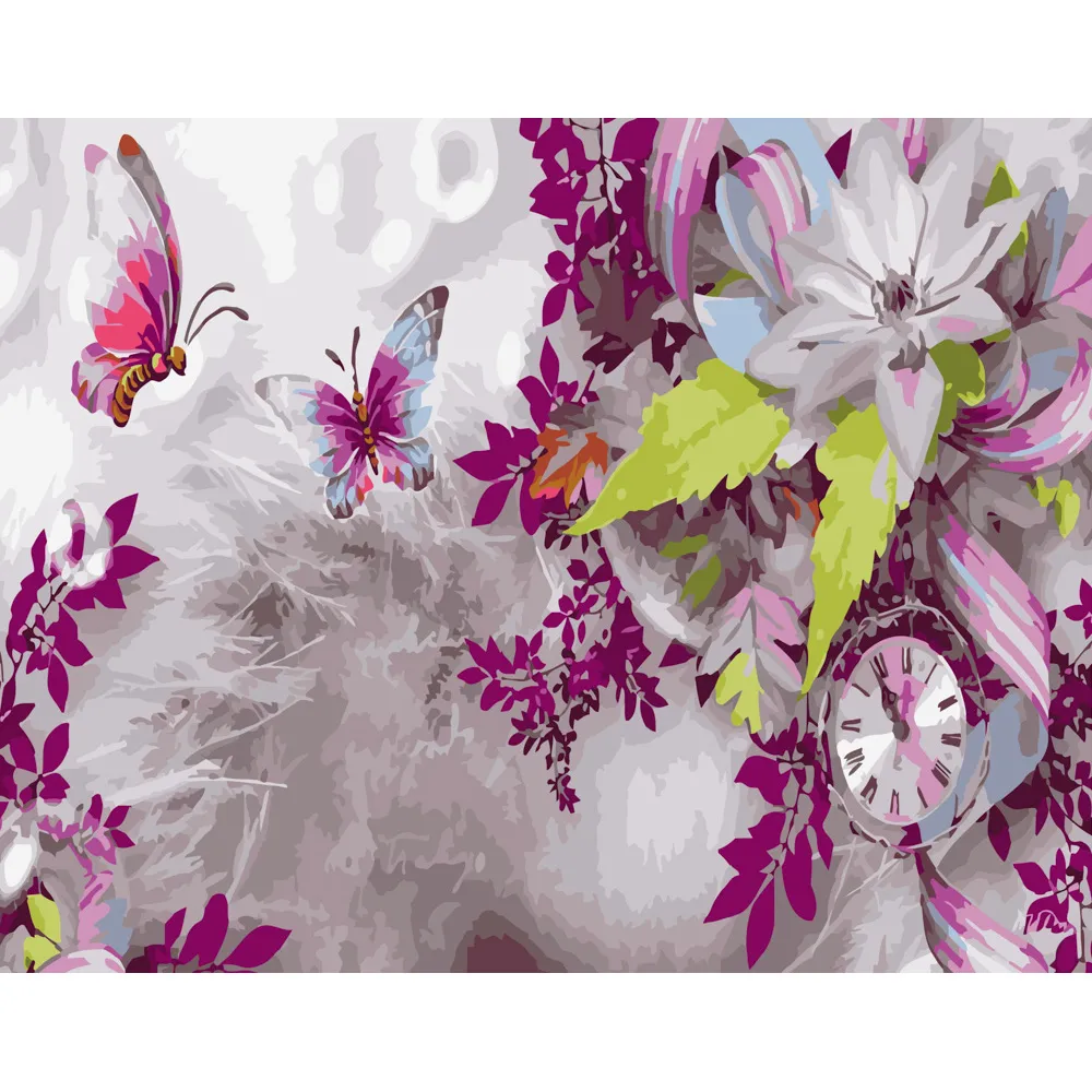 Картина за номерами Strateg Метелики в квітах розміром 40х50 см (GS325)
