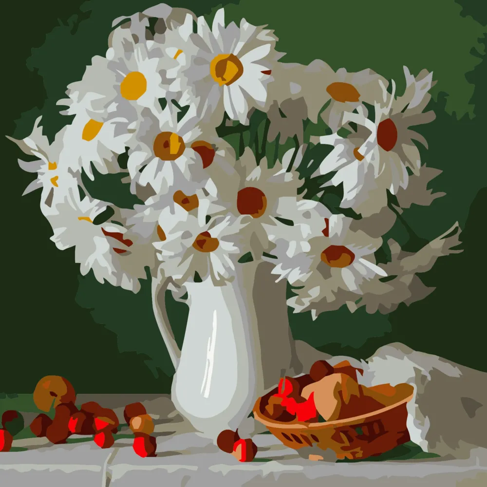 Картина за номерами Strateg Білі ромашки розміром 40х40 см (SK024)