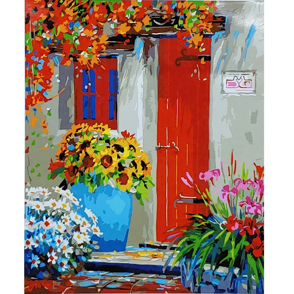 Картина за номерами Strateg Квіти на ґанку з лаком розміром 40х50 см (SY6924)
