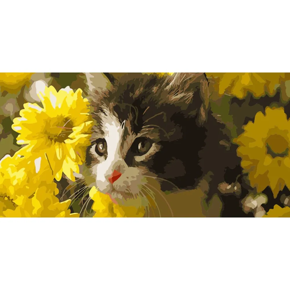 Картина за номерами Strateg Котик у квітах Strateg розміром 50х25 см (WW058)