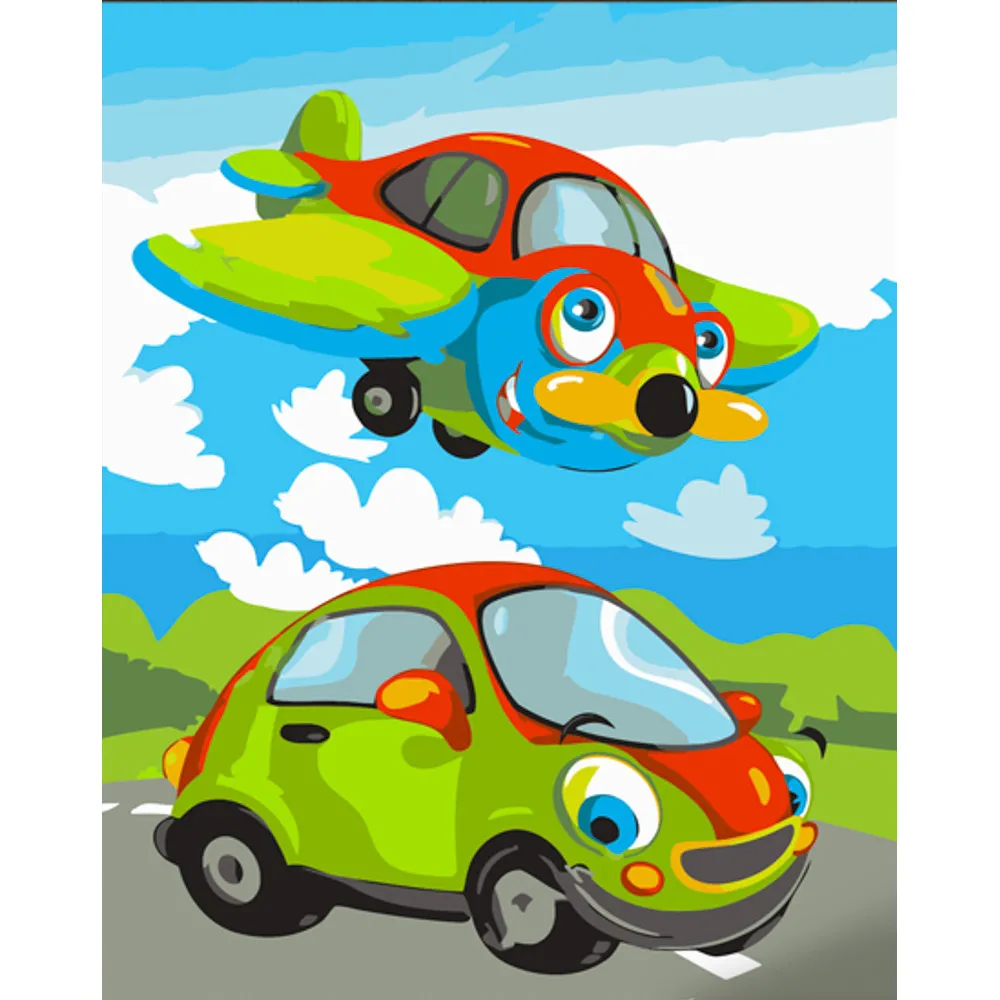 Картина за номерами Strateg Машинка та льоток з лаком розміром 30х40 см (SS6700)