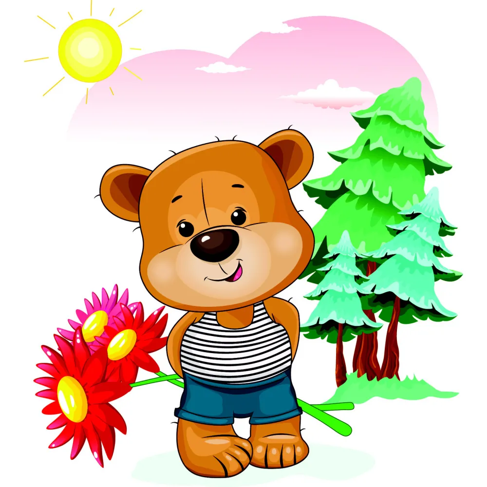 Картина за номерами Strateg Ведмідь з квітами з лаком та з рівнем розміром 30х30 см (ES197)