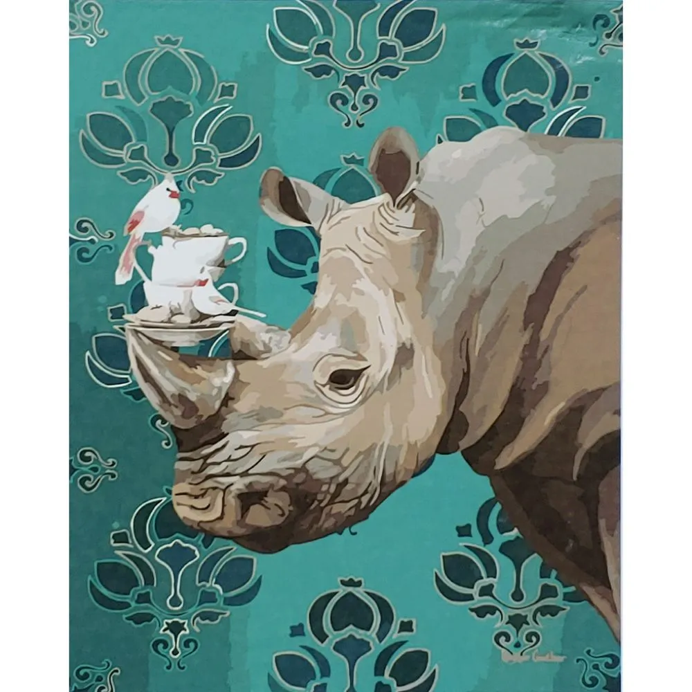 Картина за номерами Strateg Носоріг з пташкою з лаком розміром 40х50 см (SY6917)