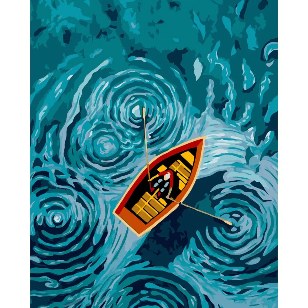Картина за номерами Strateg Одинокий човен з лаком розміром 40х50 см VA-3747
