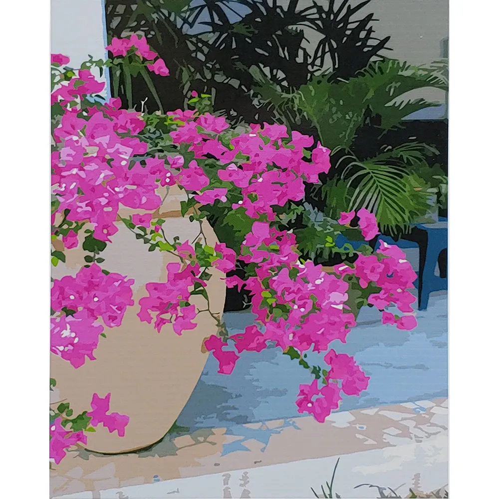 Картина за номерами Strateg Рожеві квіти на підвіконні з лаком розміром 40х50 см (SY6824)