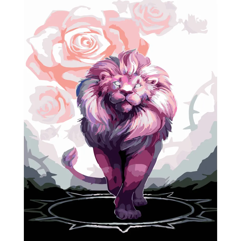 Картина за номерами Strateg Рожевий лев розміром 40х50 см (GS377)