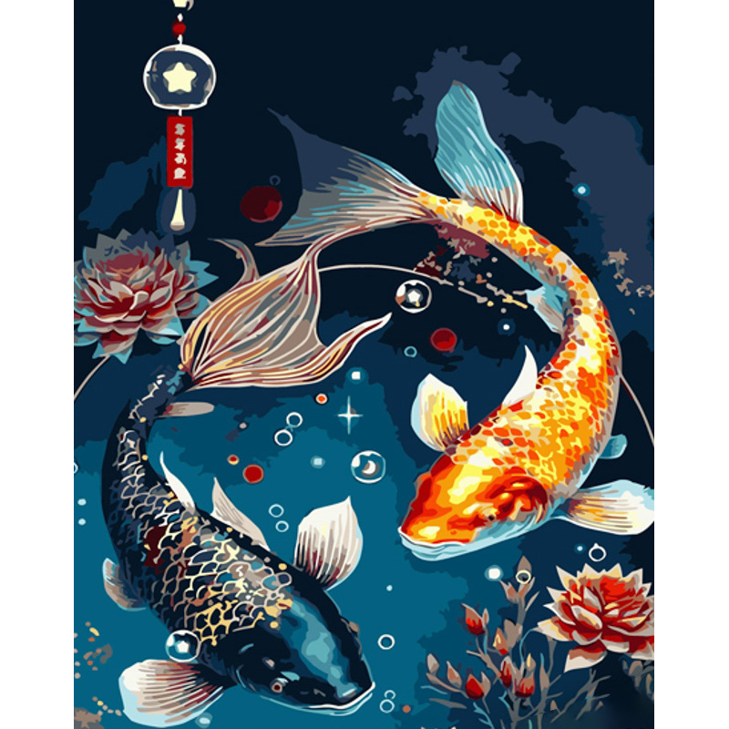 Картина за номерами Strateg Риби-символи з лаком та з рівнем розміром 40х50 см (GS1421)