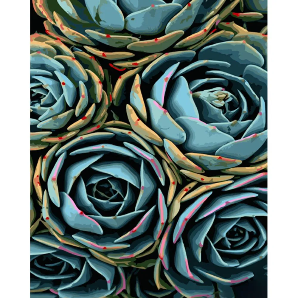 Картина за номерами Strateg Сині квіти з лаком та з рівнем розміром 40х50 см (GS1476)