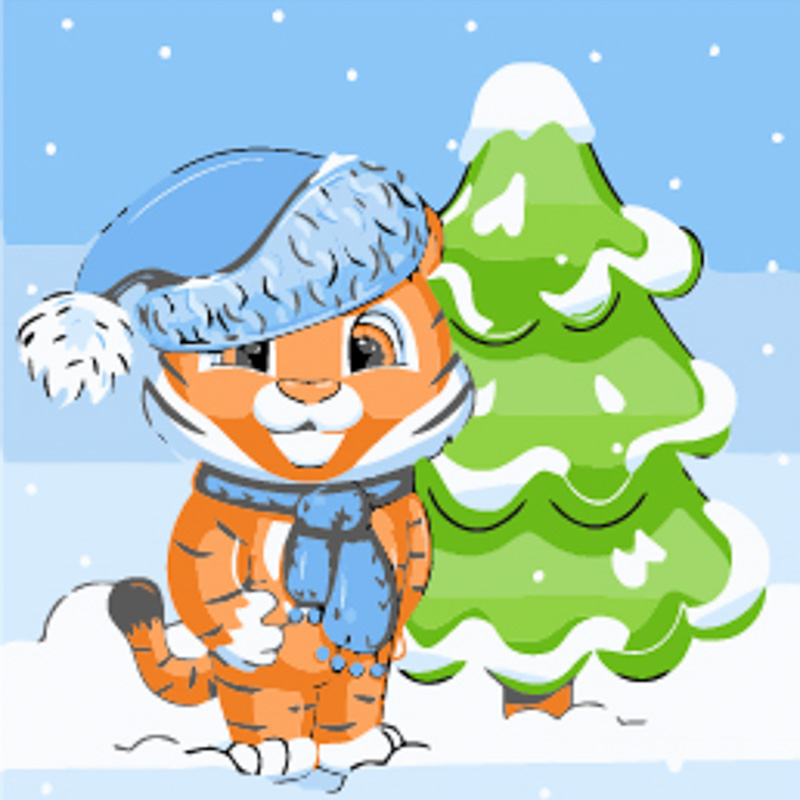 Картина за номерами Strateg Тигр з ялинкою розміром 30х30 см (ES232)